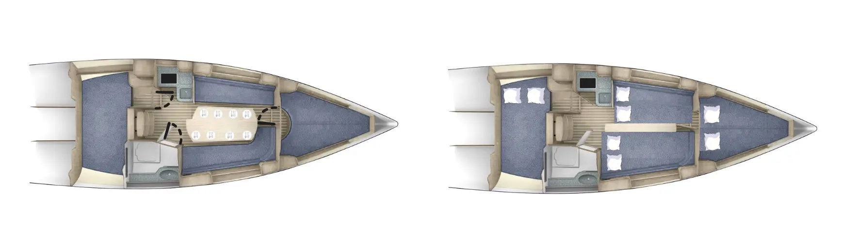 wnętrze jachtu żaglowego, plan wnętrza jachtu Maxus